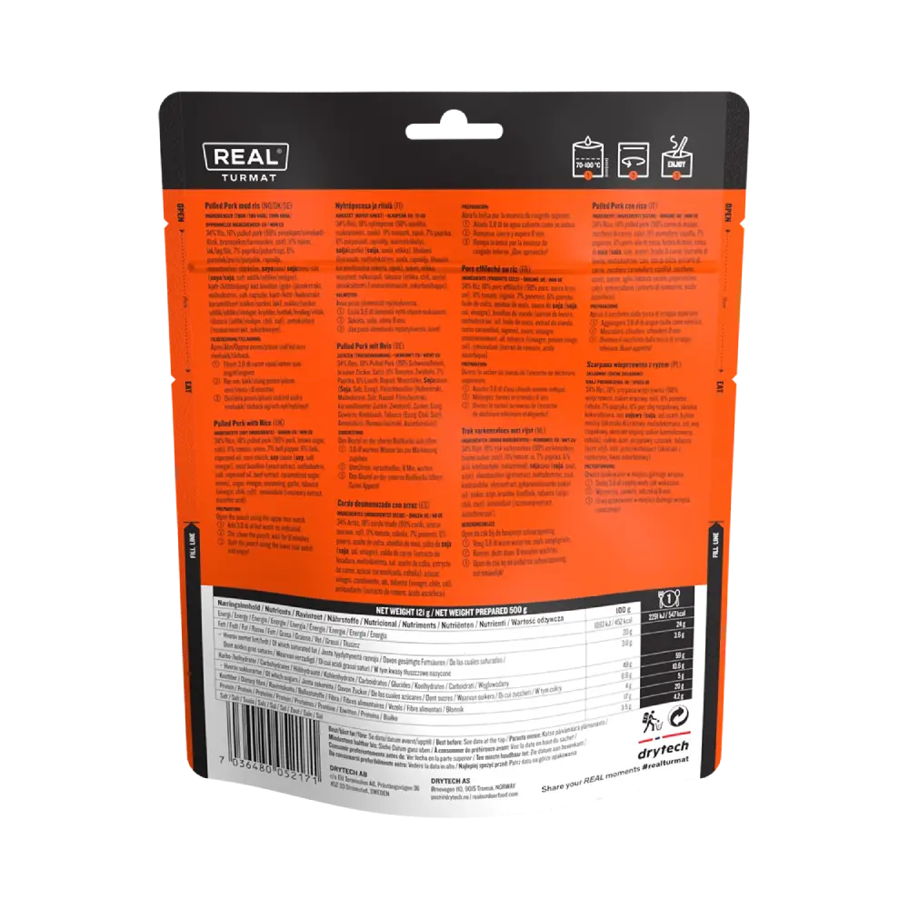 Real Turmat Szarpana Wieprzowina z Ryżem to danie inspirowane klasykami kuchni amerykańskiej, które łączy w sobie komfort i wyrazisty smak. Delikatna, wolno gotowana wieprzowina, starannie szarpana na soczyste kawałki, spoczywa na puszystym ryżu, tworząc gulasz pełen głębi i aromatu. To danie o intensywnym smaku i aksamitnej konsystencji, idealne dla miłośników tradycyjnych, sycących potraw, którzy cenią sobie autentyczne kulinarne doznania