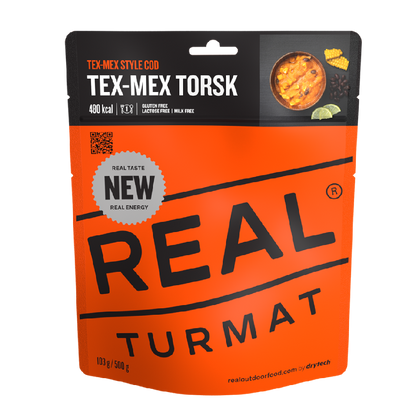 Tex-Mex Cod od REAL Turmat to świeże arktyczne spojrzenie na klasyk kuchni Tex-Mex — idealne rozwiązanie na posiłek w podróży.